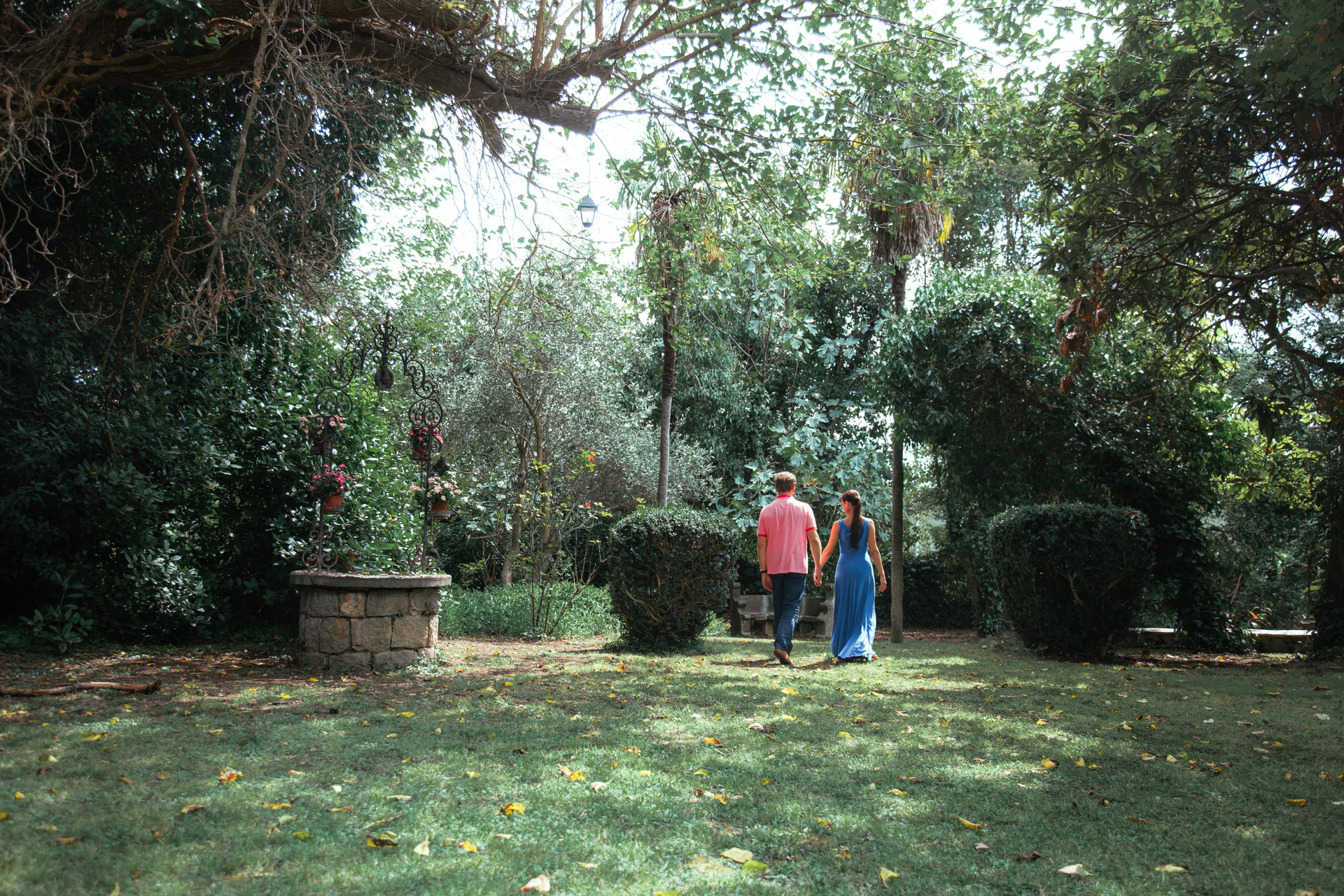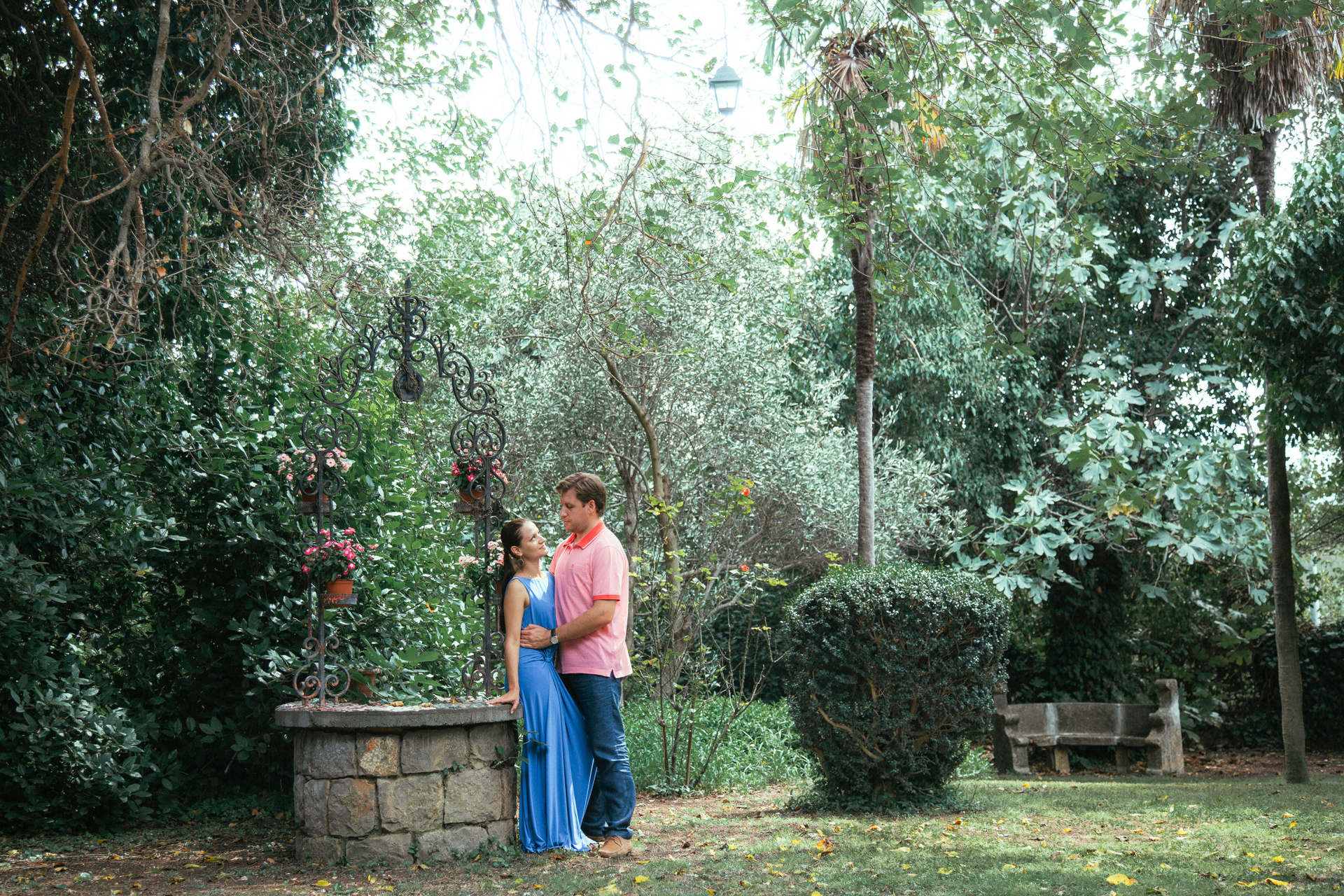 Романтическая прогулка молодоженов в летнем саду парка Коломенское.